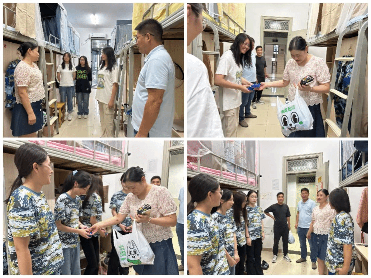 走访时,穆娟为同学们送上精心准备的月饼、零食等中秋礼品,小小的礼品承载着学院和老师对学生的深切关怀。同学们纷纷表示,虽然目前军训很辛苦,还在逐渐适应大学的生活,有时也会很想家,但有学院和老师的关心,心里感到很温暖,能够在学校与老师们、同学们共度中秋佳节,更是感受到了家的温暖。他们会珍惜这份来自学校的关爱,努力学习,为自己的未来不断拼搏。
