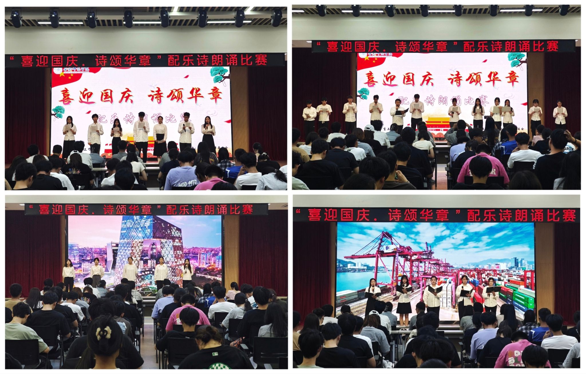 为庆祝中华人民共和国成立75周年,弘扬爱国主义精神,展现新时代青年风采,9月29日下午,第四期大学生青春学习营在锦绣校区大学生活动中心举办“喜迎国庆,诗颂华章”配乐诗朗诵比赛。青春学习营10个小组学员参加比赛,学生工作部、宣传部、就业创业工作处、院团委等单位负责人和教师担任评委,200余名学生到场观看。