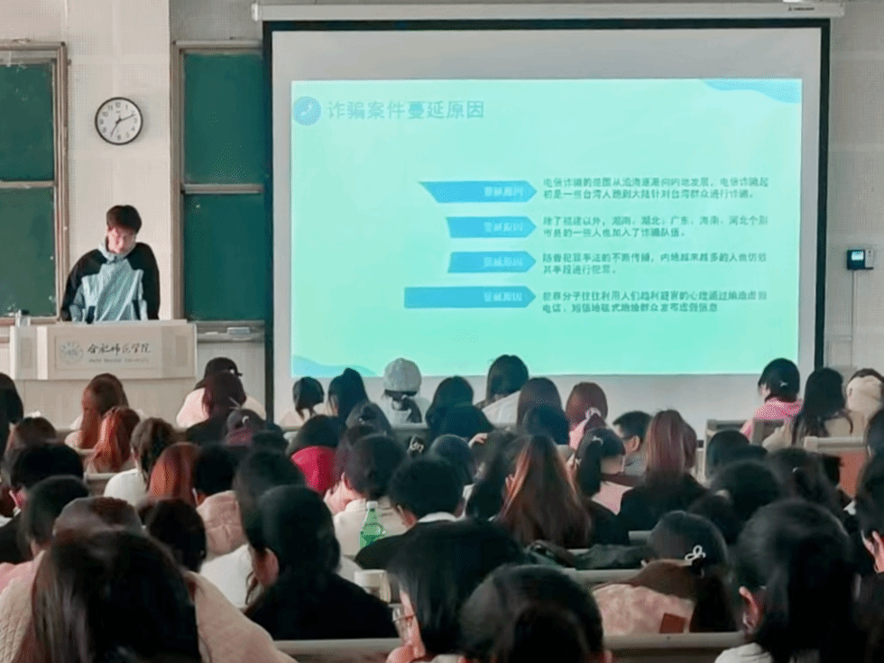 10月30日,文学院学生会承办的反诈骗宣讲宣传活动在滨湖校区博学楼D101教室举行。本次活动旨在通过反诈宣讲和诈骗案例解析,增强学生反诈意识和防诈能力,营造“人人反诈”的良好氛围。