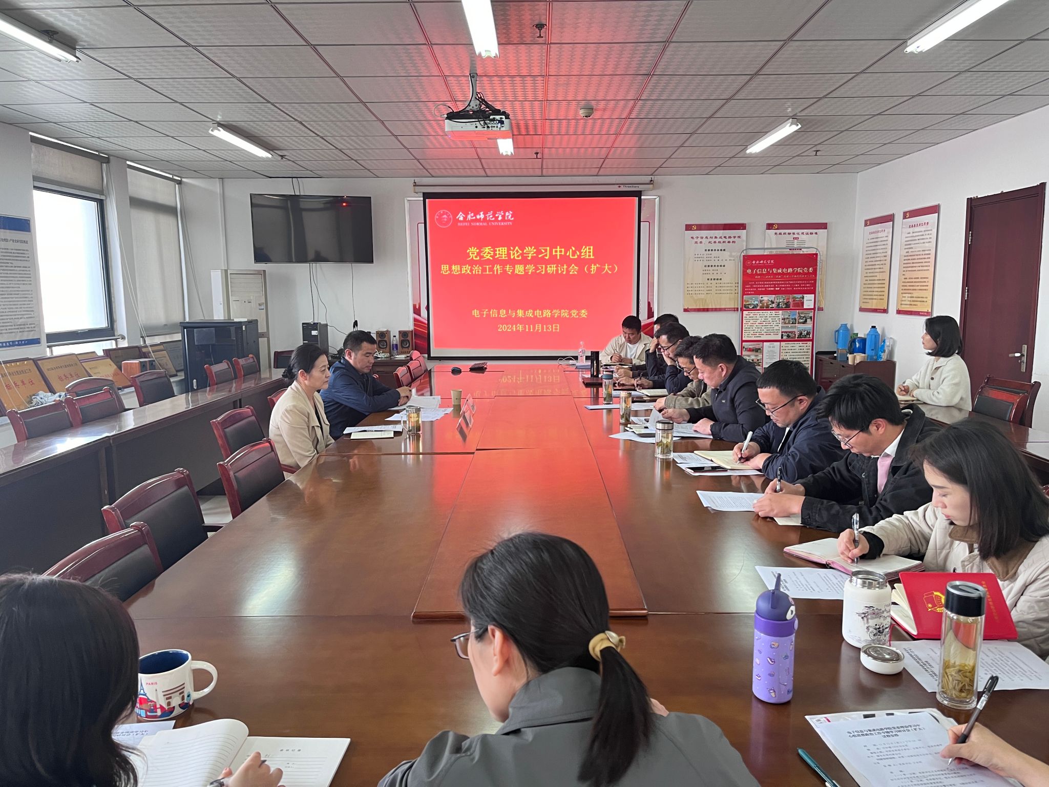 根据学校党委关于强化重点工作专题部署、落实省委巡视整改等有关要求,11月13日下午,电子信息与集成电路学院党委理论学习中心组举行“思想政治工作”专题学习研讨会(扩大)。