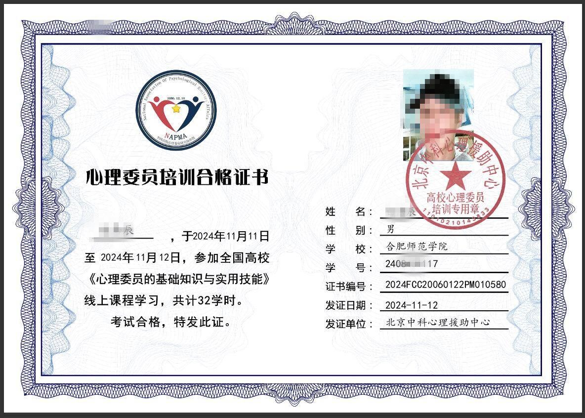 线上MOOC培训依托“心理委员与朋辈辅导工作平台”,经过16个专题的MOOC培训,2024级心理委员对心理基础知识与工作技能有了基本认识,并全部通过专题测试获得心理委员培训合格证书。