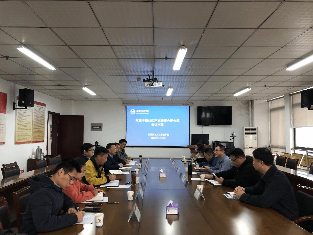 11月19日上午,中国AIGC产业联盟合肥分部陈小奇一行来我院开展校企合作交流,教务处处长钱立青、文学院院长何旺生、美术与设计学院院长吴道义、计算机与人工智能学院院长谢飞和相关专业骨干教师在行知楼1302会议室参加了会议。