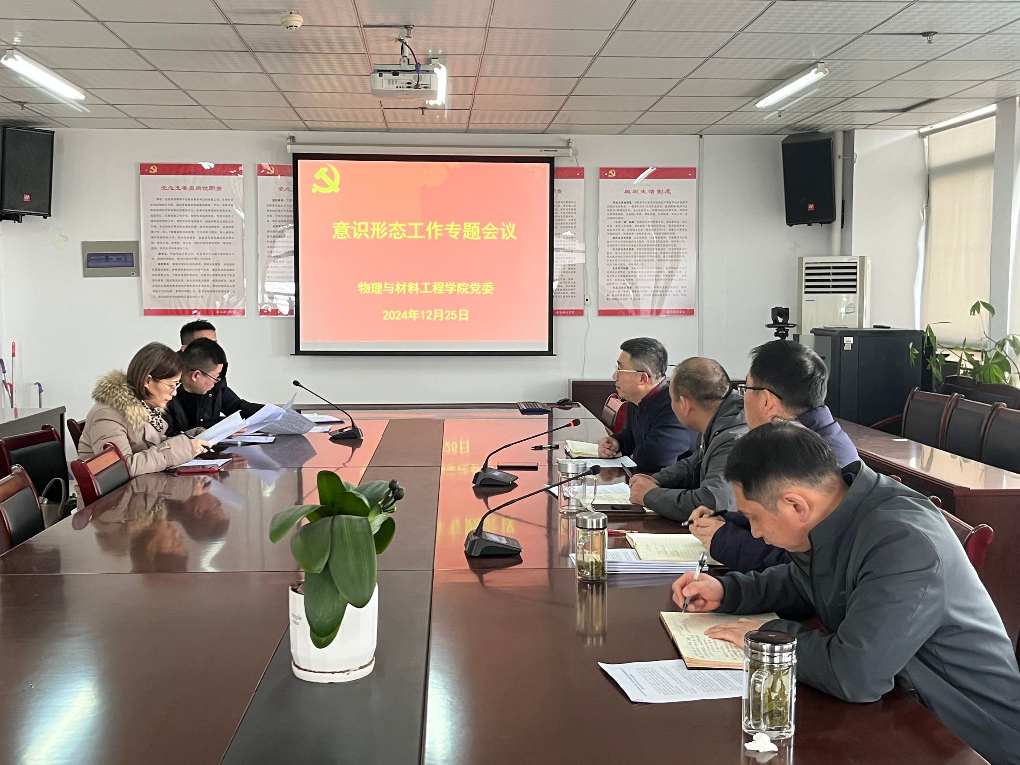 12月25日,物理与材料工程学院党委召开意识形态工作专题会议,学院领导班子成员、党委委员参加会议。