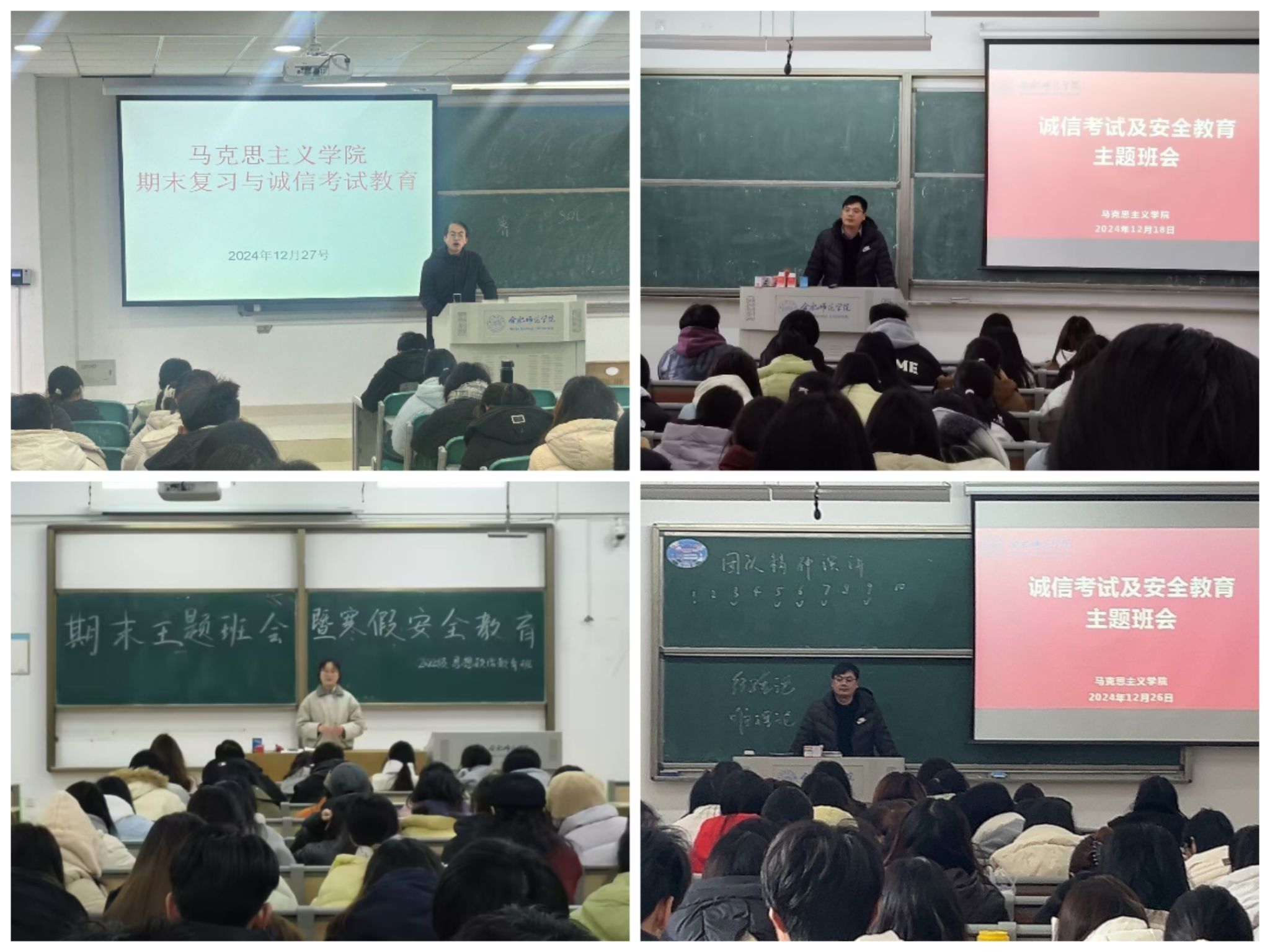 为进一步推动考风考纪建设,强化学生诚信考试意识,不断筑牢校园安全防线,12月18日至27日,马克思主义学院分别在锦绣校区、滨湖校区召开“诚信考试暨期末安全教育”主题班会,全院各年级学生共计370余人参加了班会。