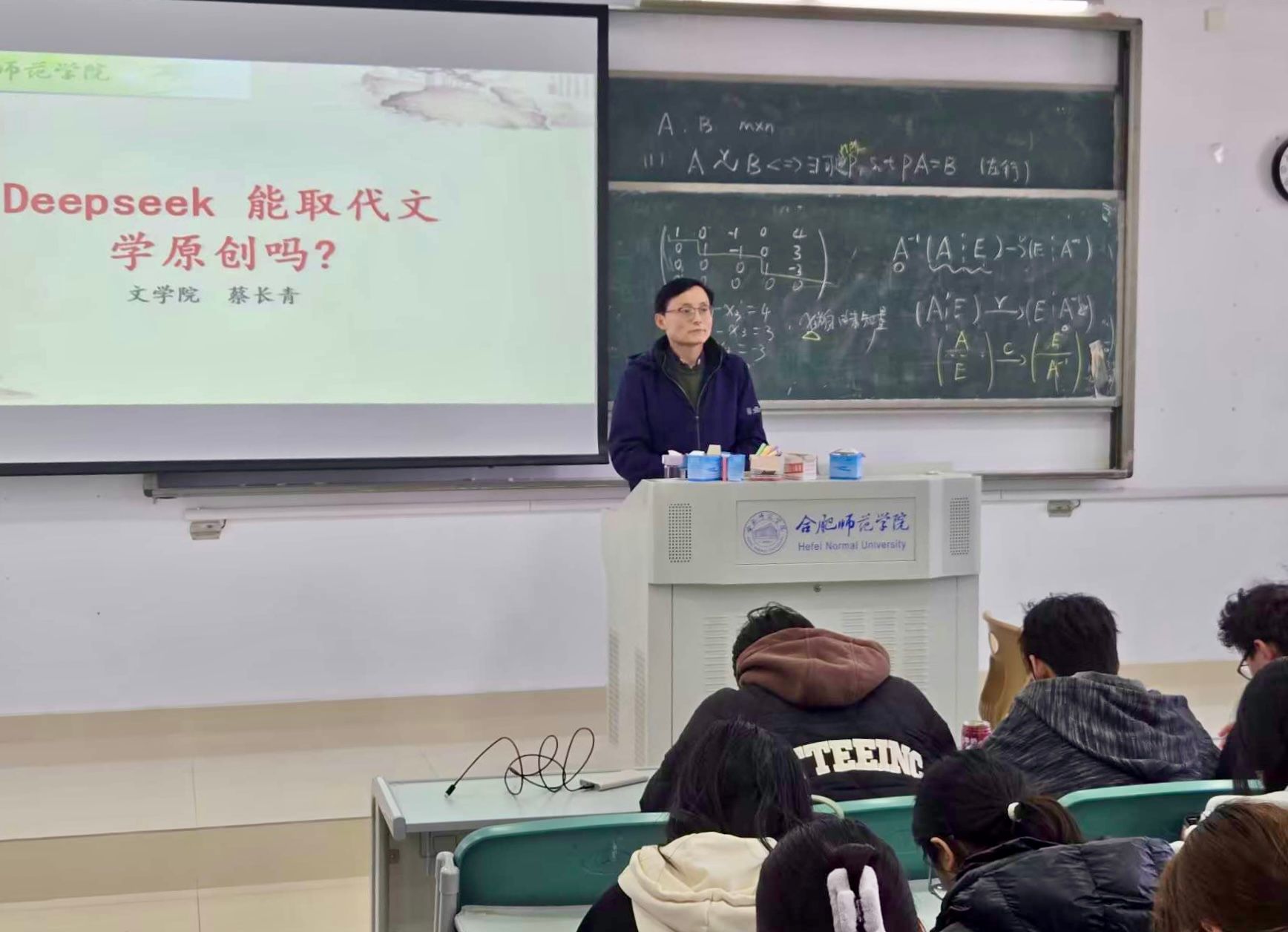 3月19日,文学院“行知讲堂”在滨湖校区开讲,中文系蔡长青老师在博学楼A203教室作题为《DeepSeek能取代文学原创吗?》主题讲座,带领汉语言文学专业学生一同领略原创文学与AI的跨界对话。