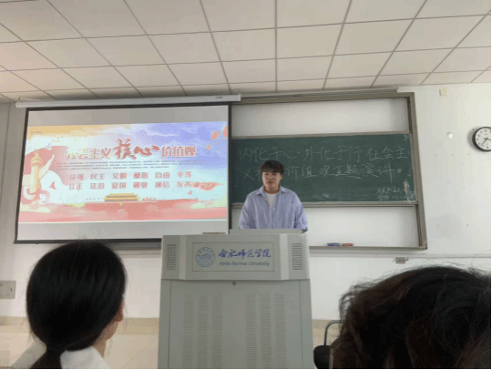 为深化青年学子对社会主义核心价值观的理解与践行,3月26日下午,马克思主义学院在博学楼A203教室举办第二届“内化于心 外化于行”社会主义核心价值观主题演讲比赛,本次活动吸引了近百名同学参与。