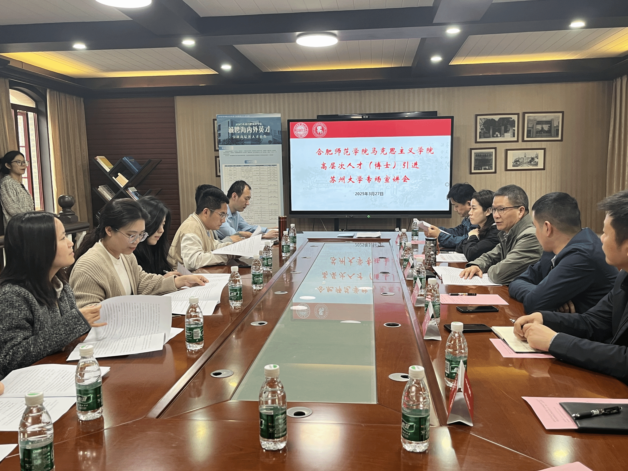 此次赴苏州大学交流学习并开展高层次人才引进宣讲,不仅增进了我院与苏州大学马克思主义学院的相互了解,为今后双方的深度合作奠定了基础,同时也为我校引进高层次人才开辟了新渠道,对推动学科建设、科研发展与人才培养都具有重要意义。(马克思主义学院:郭嘉)