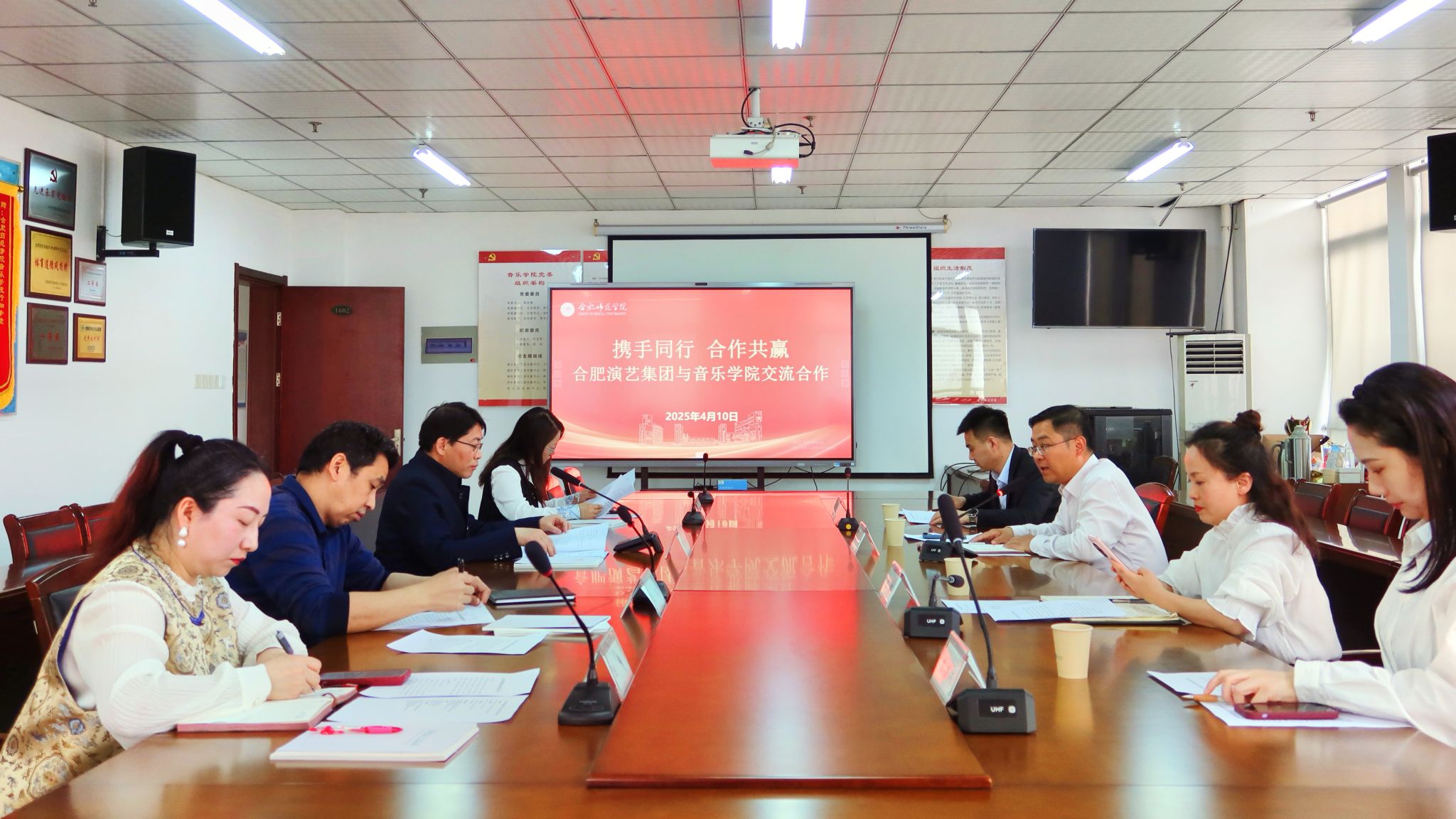 在积极响应国家关于推动文化艺术普及与合作的政策精神指导下,4月10日,合肥演艺集团一行莅临388vip太阳集团音乐学院就具体合作事宜展开交流。出席会议的有合肥演艺集团党委书记、董事长赵斌,战略发展与品牌推广部副部长戴璐,合肥大剧院副总经理乔文,公共事务部副经理陈韦韦。音乐学院院长、党委副书记李劲松、音乐学院党委副书记、纪委书记宋辉、党委委员、副院长康勤及实践实训中心主任陆伟参会交流。此次合作旨在通过资源共享、优势互补,共同推动合肥市文化艺术事业的繁荣发展。