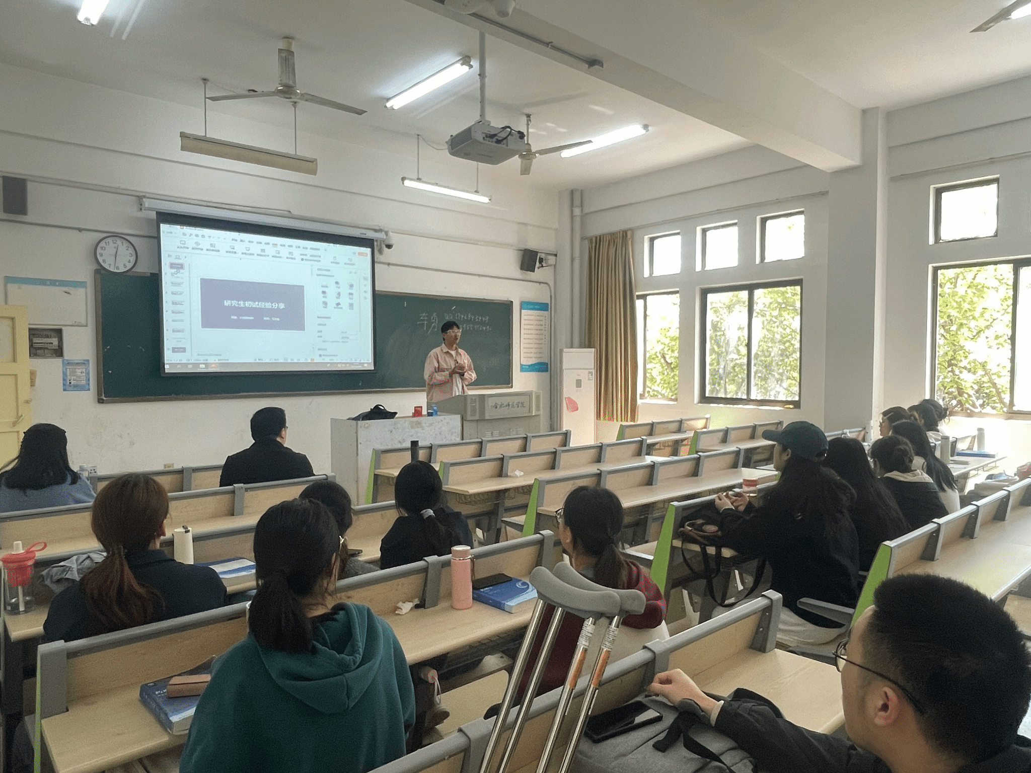 为帮助2022级学生明确考研方向、优化备考策略,化学与制药工程学院药物制剂系于4月14日在博约楼举办2025年考研经验交流会。本次活动特邀2021届考研优秀学子分享实战经验,2022级全体考研意向学生及教师代表参会。会议由2022级药物制剂班学业导师颜瑞老师主持,药物制剂教研室赵明老师参会并发言。
