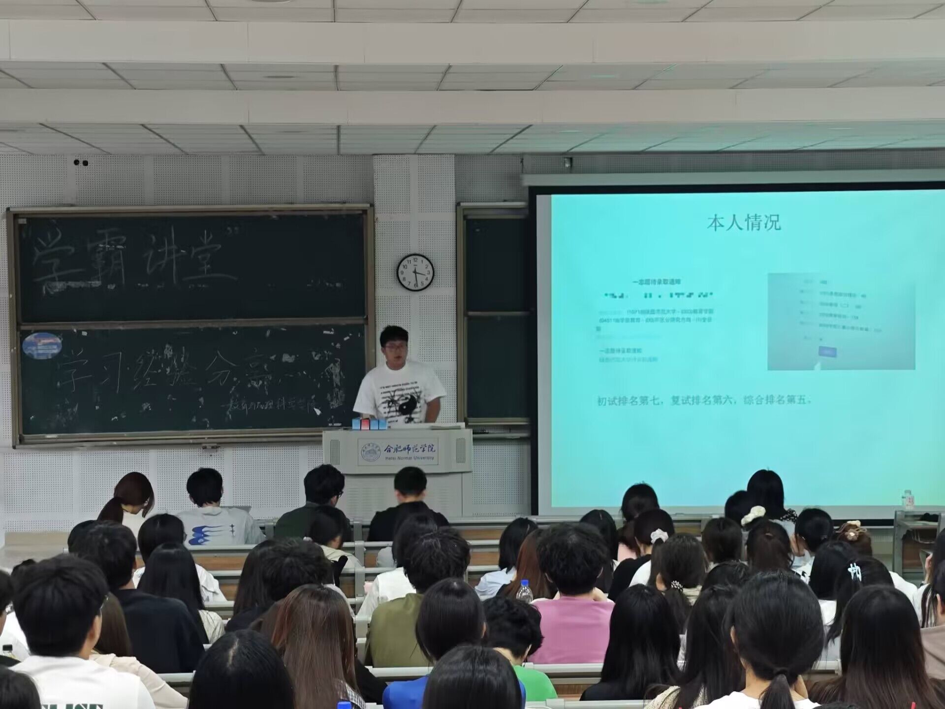 为充分发挥优秀学子榜样引领作用,助力青年学生掌握学习方法、明晰发展方向、激发学习热情,5月14日,教育与心理科学学院在滨湖校区博学楼D101教室举办“学霸讲堂”活动。教育与心理科学学院国家奖学金获得者、2024年度“感动合师”十大青年学生之拼搏人物——2021级小学教育专业王学优,考取陕西师范大学硕士研究生、2021级学前教育专业胡鹏,以及2024年度十佳班级、五四红旗团支部标兵获得者——2022级小学教育4班班长柏雪作为优秀学生代表,分享了学习经验和成长心得,2023、2024级200余位同学参加了学习分享。