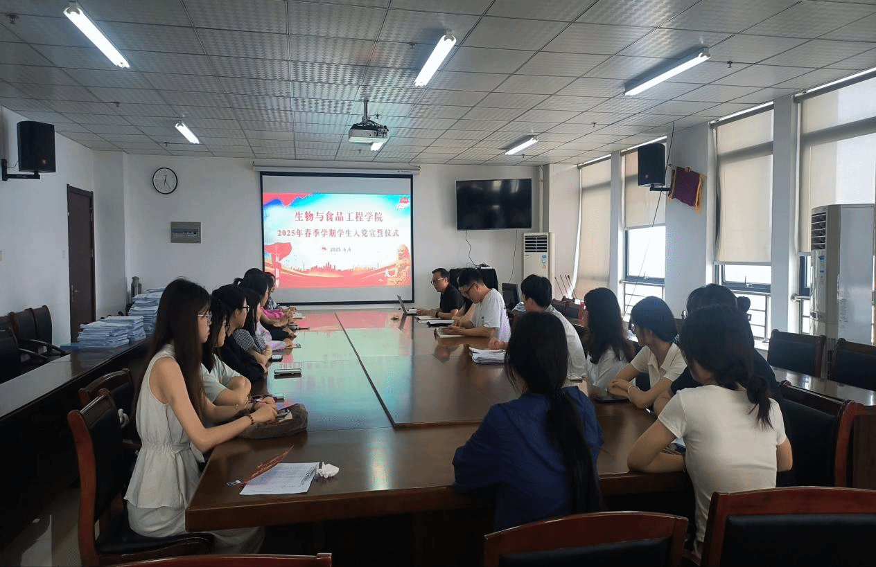 为进一步加强党性教育,引导新发展党员牢记入党初心,切实增强责任感和使命感,6月6日,生物与食品工程学院在1502会议室隆重举行2025年上半年新发展党员入党宣誓仪式,学生党支部书记和17名新发展的党员同志参加了仪式,仪式由学生第一党支部书记周其松主持。