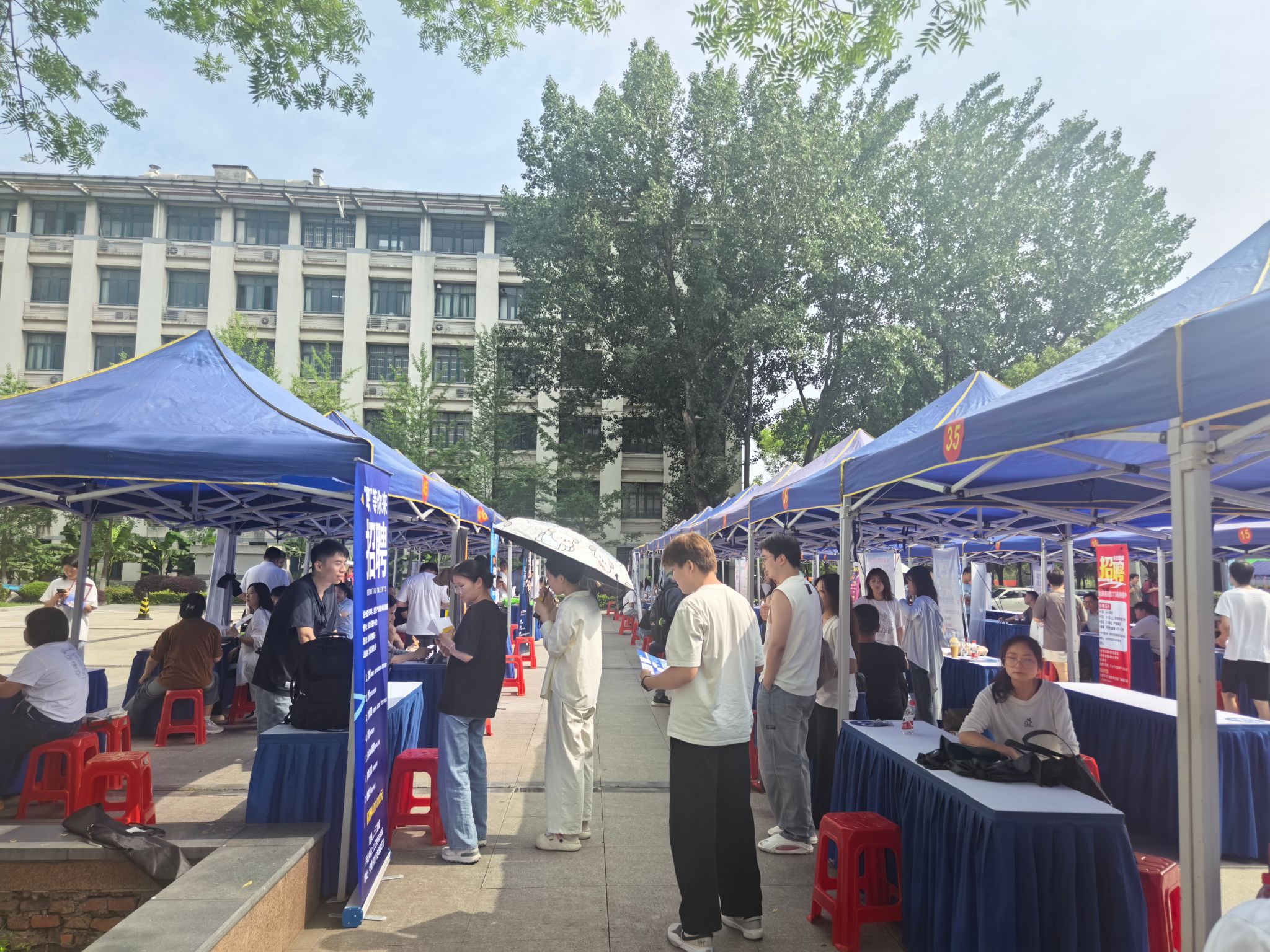为深入贯彻落实党中央、国务院关于促进高校毕业生就业工作的决策部署,进一步落实2025届高校毕业生就业“百日冲刺”行动,促进毕业生高质量充分就业,6月13日,学校在锦绣校区逸夫楼西广场举办2025届未就业毕业生专场招聘会暨2026届毕业生实习对接会。院党委副书记梁立昌,党委委员、副院长周端明到现场指导工作。