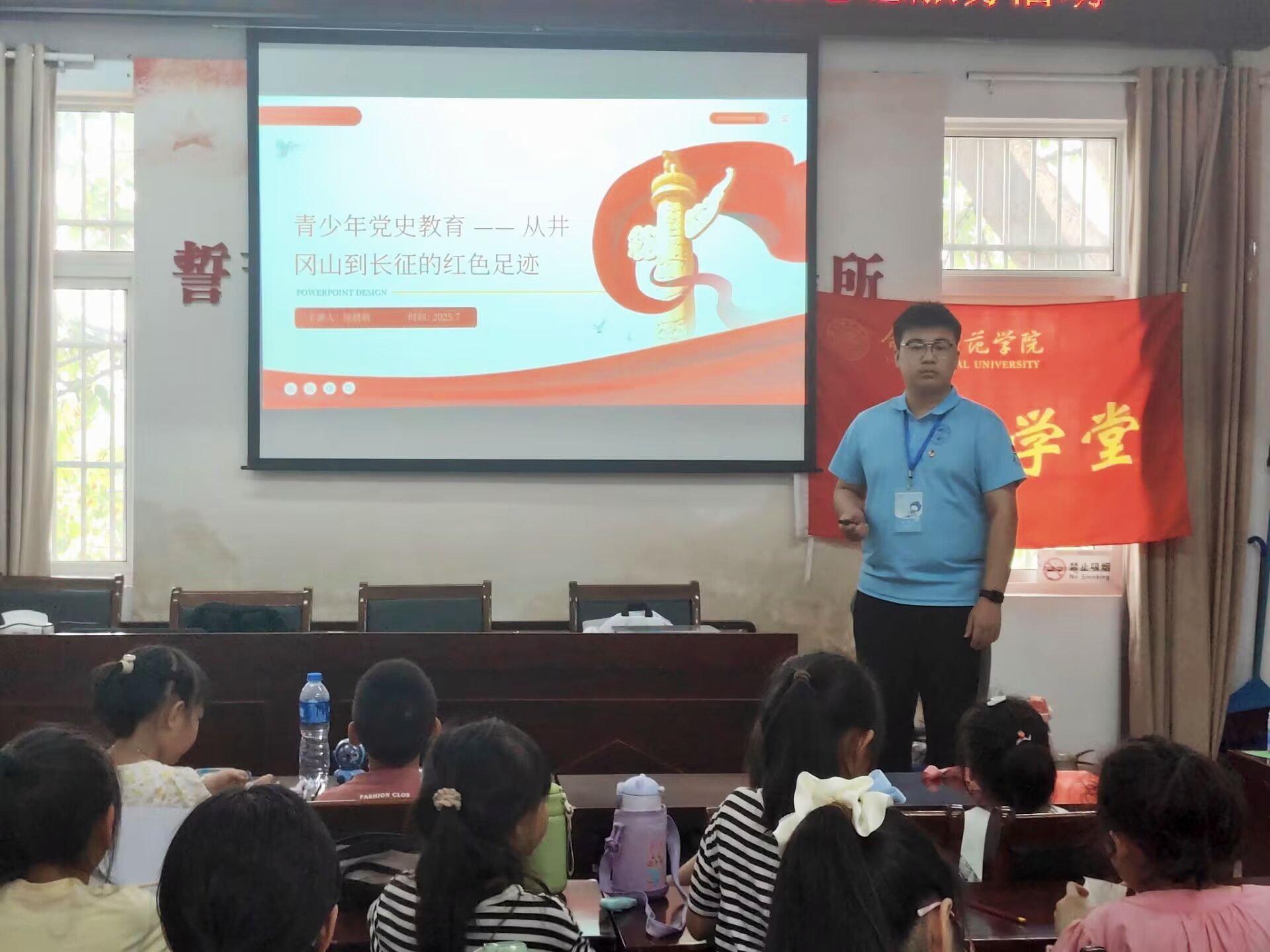 随着清晨的阳光照射大地,“小先生”徐晨航开展了第一节党史教育课程,首先以“有没有听过红军的故事”为切入点,鼓励小学员们分享故事。随后,小学员们跟随着“小先生”的讲解,重温了那一段艰苦但具开创性的红色岁月。在井冈山的斗争中,中国共产党积累了宝贵的历史经验,为中国革命的胜利奠定了坚实基础。听过先辈们的故事,小学员们的脸上呈现出坚毅的神色。接着,徐晨航组织小学员们观看《百年求索》中讲述遵义会议的片段,小学员们的心与纪录片中的一幕幕画面同频共振着,当红军们走出“至暗”的那一刻,孩子们童真的脸上也绽放出同样明媚灿烂的笑容。在此次党史教育课程结束后,有位小学员悄悄塞给老师一张纸条,上面写道,“感谢老师您的分享,我们会珍惜今天的幸福生活,牢牢记住历史,将先辈手中的接力棒稳稳地传下去,成为传播党史的一分子!”