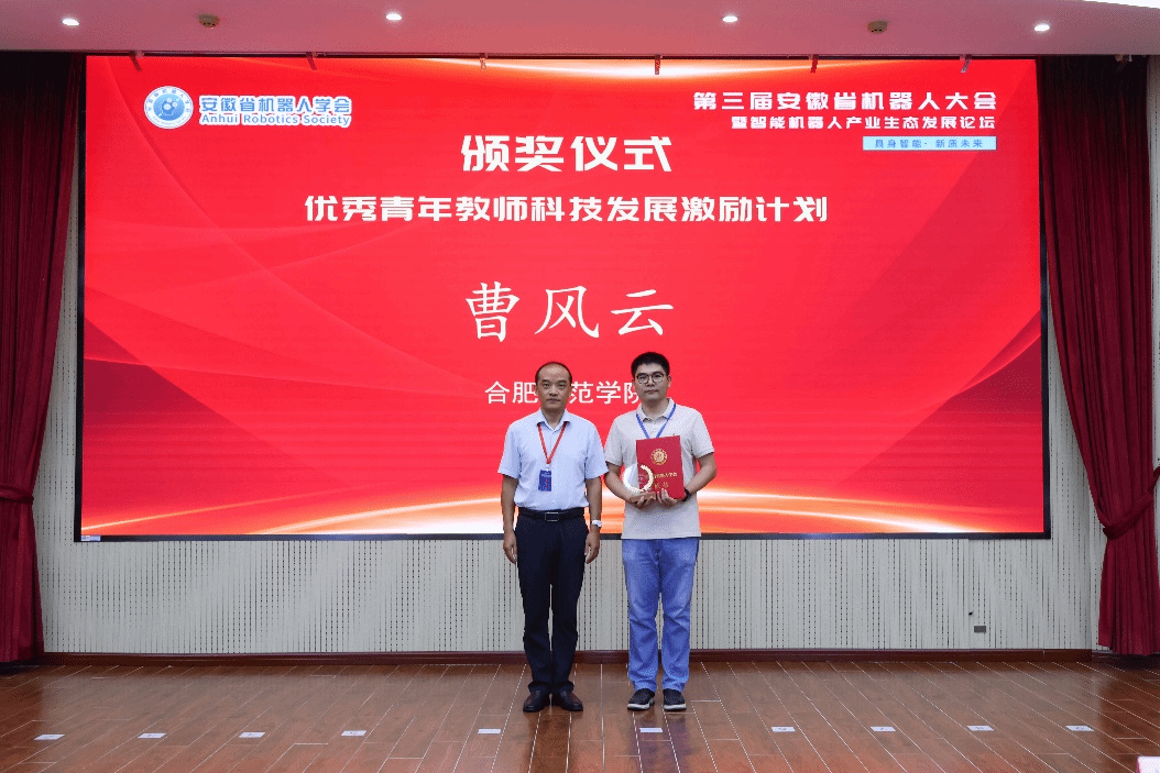 近日,第三届安徽省机器人大会暨智能机器人产业生态发展论坛在安徽工程大学召开,会上颁发了安徽省机器人学会2025年度奖励。计算机与人工智能学院曹风云老师荣获优秀青年教师发展激励计划奖励。