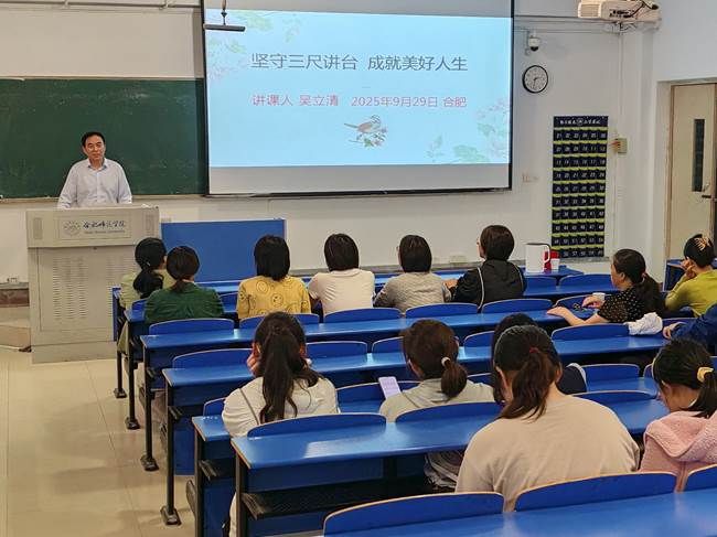 为庆祝建校70周年,2025年9月29日下午,388vip太阳集团生物与食品工程学院在锦绣校区逸夫楼109教室举办了一场题为“坚守三尺讲台 成就美好人生”的专题讲座。本次讲座特邀宿州市第二中学生物特级教师、正高级教师、安徽省“江淮学科名师”、享受省政府特殊津贴专家、我院1997届优秀校友吴立清担任主讲。讲座由科研处与生物与食品工程学院联合主办,吸引了众多师生到场聆听。