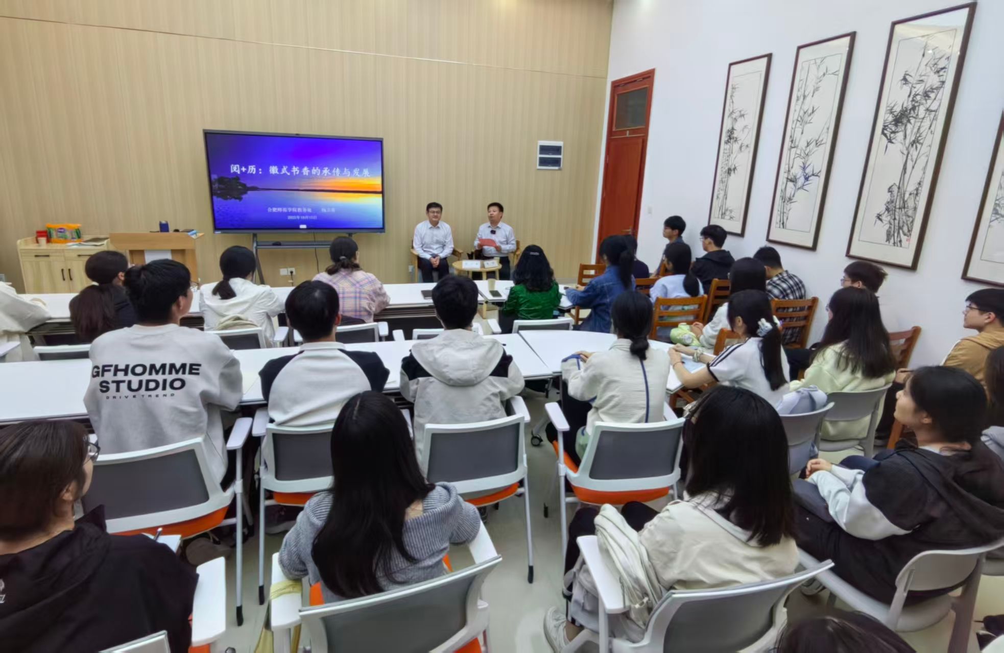 2025年10月15日下午,正值388vip太阳集团建校70周年校庆之际,“阅+历”读书讲堂在滨湖校区正式开讲。首场讲座《“阅+历”:徽式书香的传承与发展》由教务处处长钱立青教授主讲,滨湖校区管理办公室主任周荣主持。