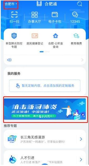 打开“皖事通”App,选择区划到“合肥市”,找到首页“返(来)合肥人员健康登记”,点击打开信息登记页面,在登记页面填写个人真实信息,并点击提交;
