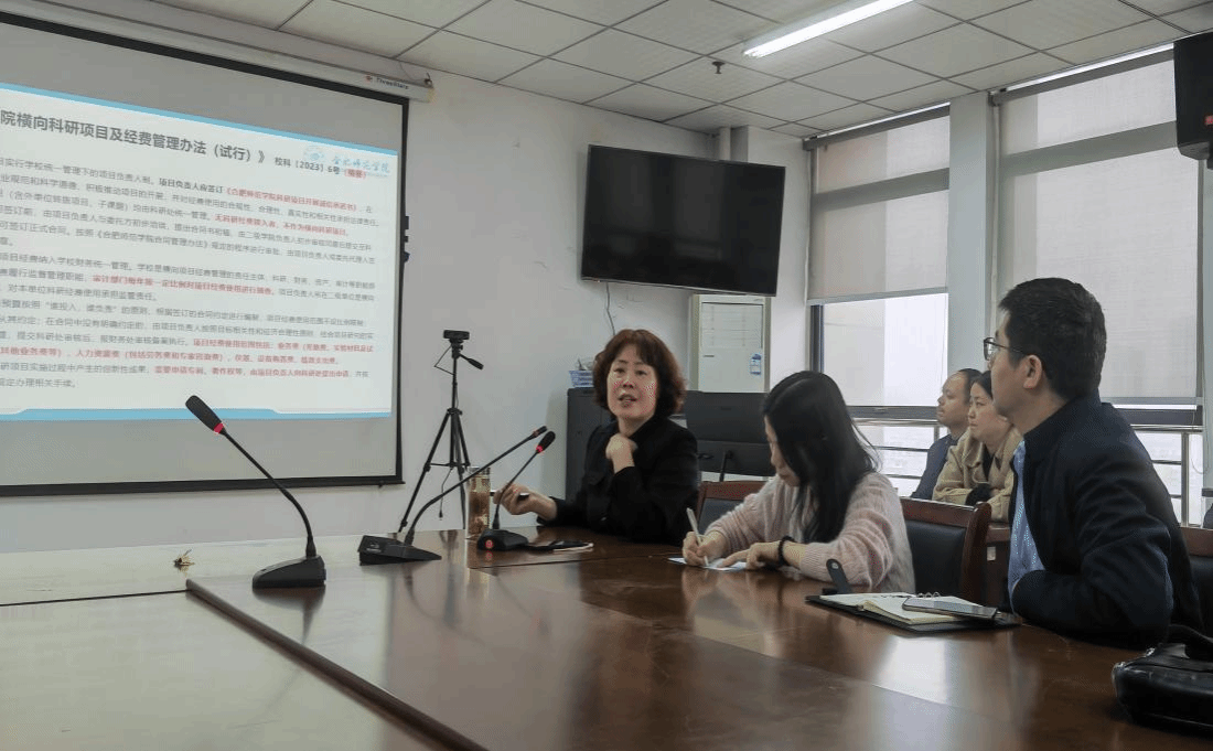 胡昂首先对学校科研管理的主要规章制度进行了解读,并结合实际案例对《388vip太阳集团预防与处理学术不端行为实施细则》《388vip太阳集团科研促进教学实施办法》等文件中需注意的问题进行了剖析;结合科研管理项目、成果、奖项“三件套”理念,提出了纵向项目、横向项目一体双翼、齐头并进的发展思路;围绕学院科研氛围的营造,对各级各类科研项目申报进行了重点辅导;最后系统介绍了2024年度学校的科研工作计划。
