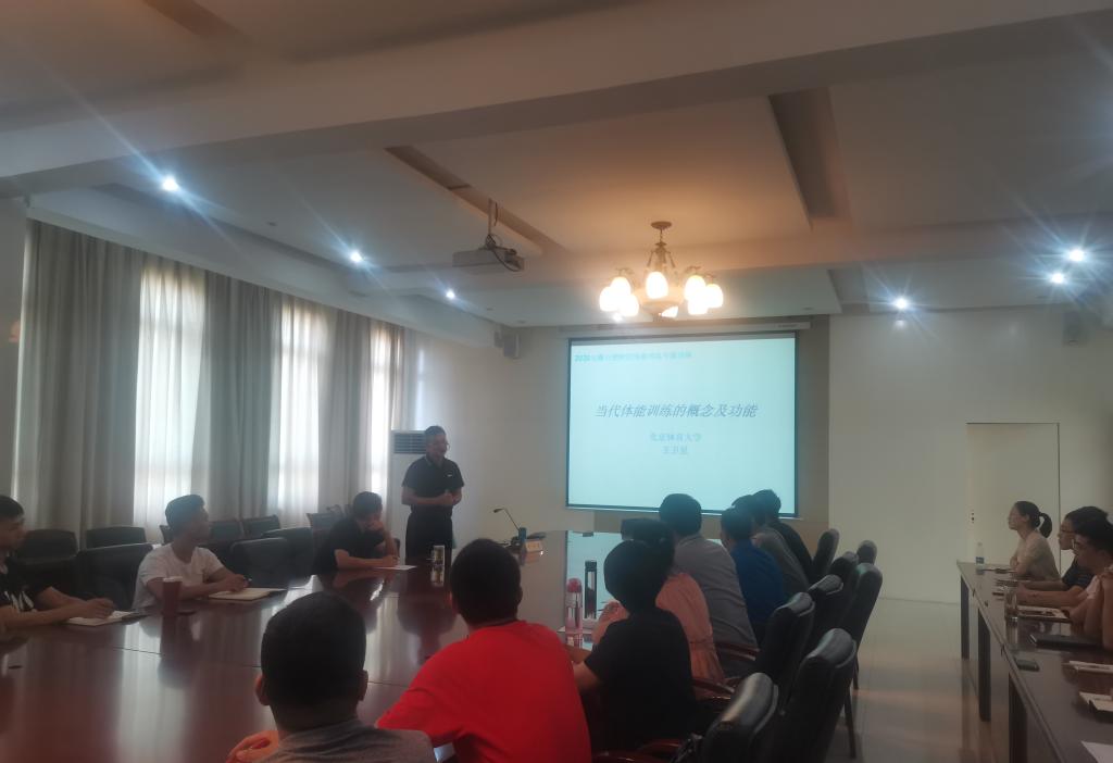 本网讯 9月3日下午,应体育科学学院邀请,国内知名体能训练专家、北京体育大学博导、国家体育总局体能训练与机能恢复重点实验室主任王卫星教授在学校图书馆七楼会议室为体育科学学院全体教师作了题为“当代体能训练的概念及功能”的学术讲座。讲座由体育科学学院院长宋旭主持,学院全体教师参加。