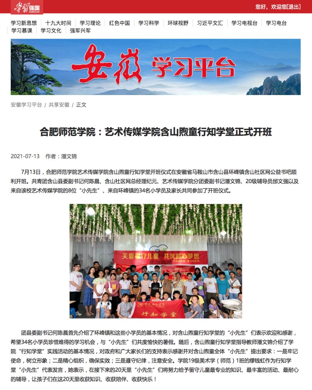“学习强国”安徽学习平台对此进行了报道。(艺术传媒学院:潘文锦)