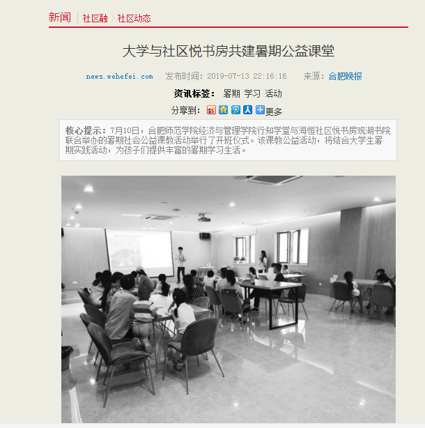 7月13日,合肥晚报、合肥在线报道对此进行了报道。(经济与管理学院)