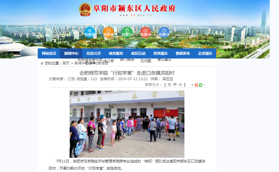 阜阳市颍东区人民政府官网两次对此进行了报道。(经济与管理学院)