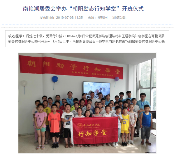网讯 7月8日,我院物理与材料工程学院“朝阳励学行知学堂”在南艳湖居委会党群服务中心顺利开班。