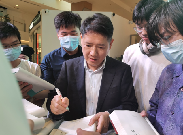 2021年11月20日在深圳中心书城《南科大创校记》发布会上,沈清华(左二)应邀与南科大创建亲历者梁北汉、高教研究者沈红教授对谈