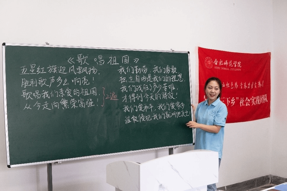 迎着星光来,伴着华灯走。在那光影交织的教室之中,陈瑾琨借助多媒体的魔法,让动画片中的卡通英雄跨越屏幕,跃然于孩子们的眼前,点燃了他们探索世界的渴望之火。而在那被岁月打磨的教室之外,陈瑾琨引领着孩子们踏入新四军革命旧址与陈列馆,让他们用自己的双眼和心灵去追溯那段波澜壮阔的历史。在边行边看的途中,她教孩子们唱起了红歌,童声稚嫩而清澈地唱响对祖国深沉的爱:“歌唱我们亲爱的祖国,从今走向繁荣富强……”革命先辈的豪情壮志随着这歌声,飘进村落的每个角落,沉淀进每一颗聆听的心。一抹会心的微笑、一滴感动的泪珠、一场授课的精彩——这些都是陈瑾琨及同伴们用满腔真挚的情感,为孩子们献上的最珍贵的礼物。